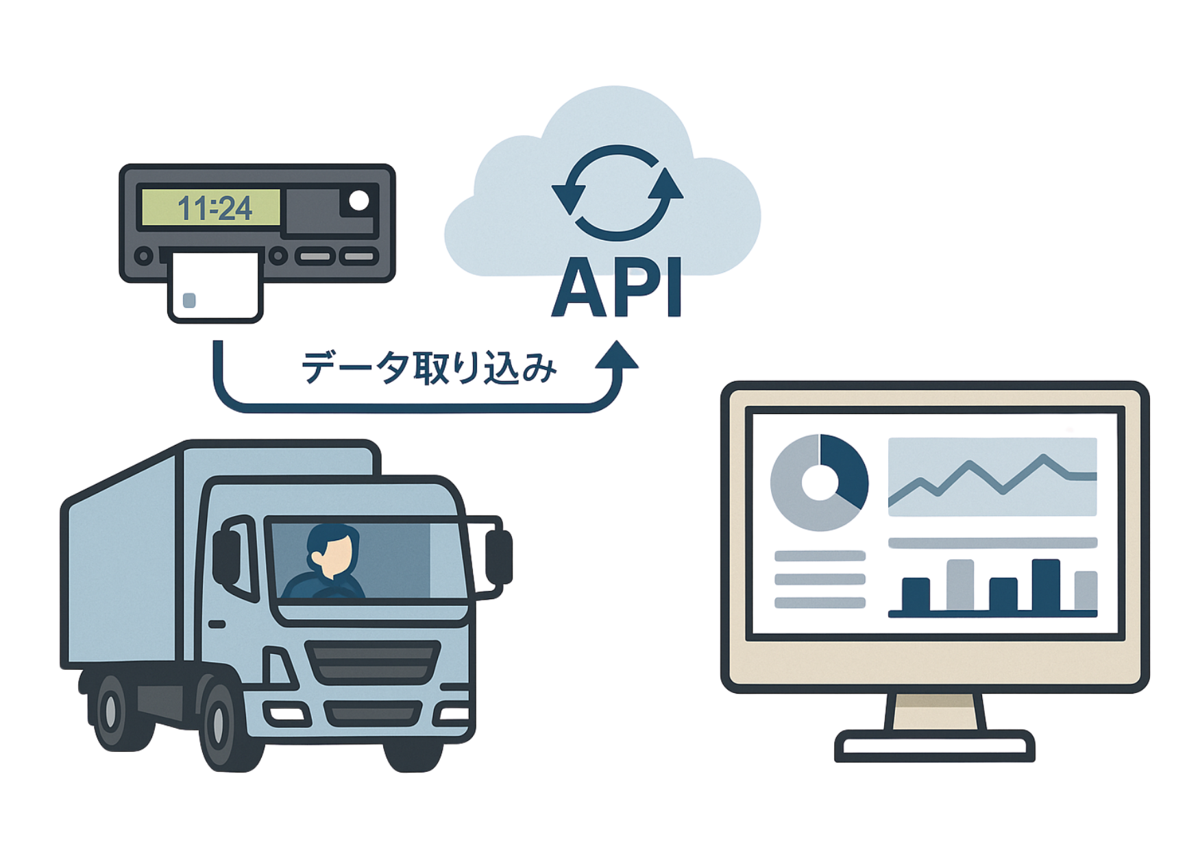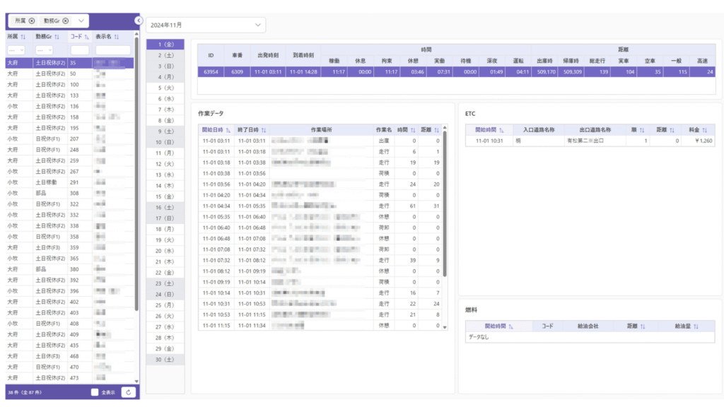 - 一部デジタコとのAPI連携でデータ自動取得